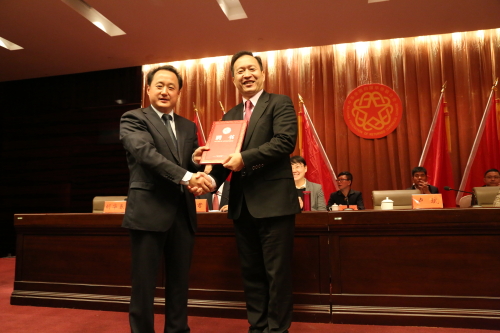 卢斌同志为西陵区侨联第三届委员会名誉主席吴天延先生颁发聘书