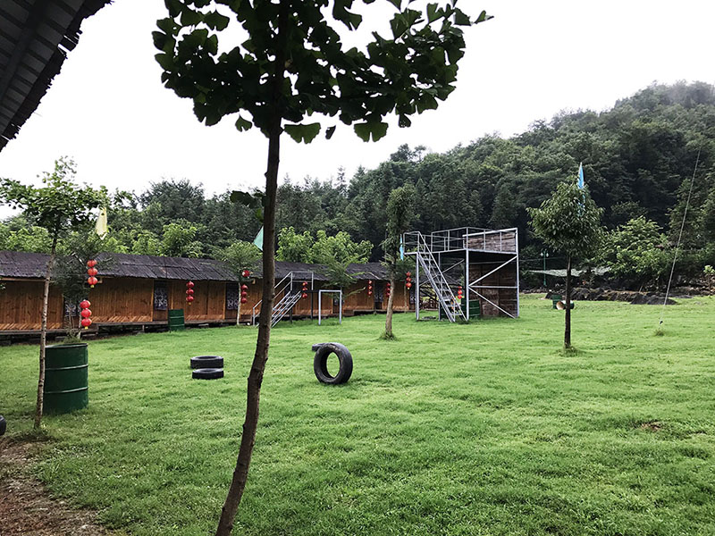 仿古建制的体验式小木屋,以及现代化的游乐场地。